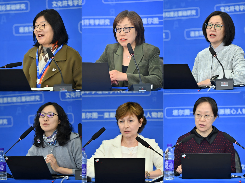 刘娟教授对比中俄文化符号学教材建设,提出教材编写需兼顾理论深度与实践需求,推动学科本土化发展。姜宏教授主张融合索绪尔结构主义与洛特曼动态符号学,构建多维度文本分析方法,揭示语言与文本的非对称关系。杨明明教授以洛特曼文化对话性理论为基础,探讨俄罗斯文化在“他者”互动中的渐进与爆发式发展特征。Мария Милованова教授结合符号边界理论与语用学,构建对抗性语义的三维分析模型(形式、功能、价值),解析俄语符号系统的意义重构机制。周海燕长聘副教授从符号学视角重新定义科学,提出其本质为动态符号体系,并强调学术传播需平衡专业性与大众化。管月娥教授解析乌斯宾斯基“视点”理论,揭示其结构诗学对俄罗斯文化“聚合性”思维的继承与创新。
